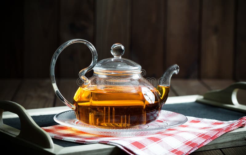 Schwarzer Tee ist ein heißes Getränk. Schwarzer Tee auf einem heißen süßen Getränk des alten Hintergrundes in einer Zusammensetzung auf einer Tabelle