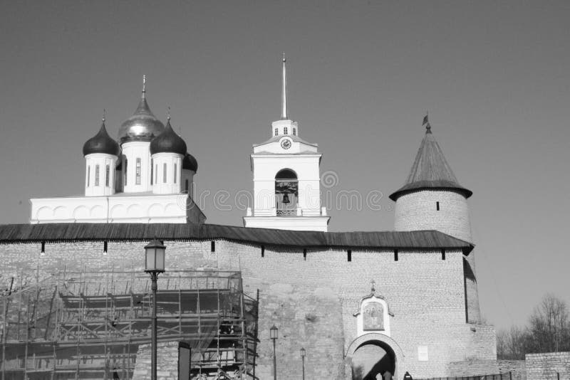 Es ia eine Kirche in Pskov, Russland Voller Tag Schwarzweiss-Effekt für Eindruck Die Gebäude sind ungefähr 400 y O